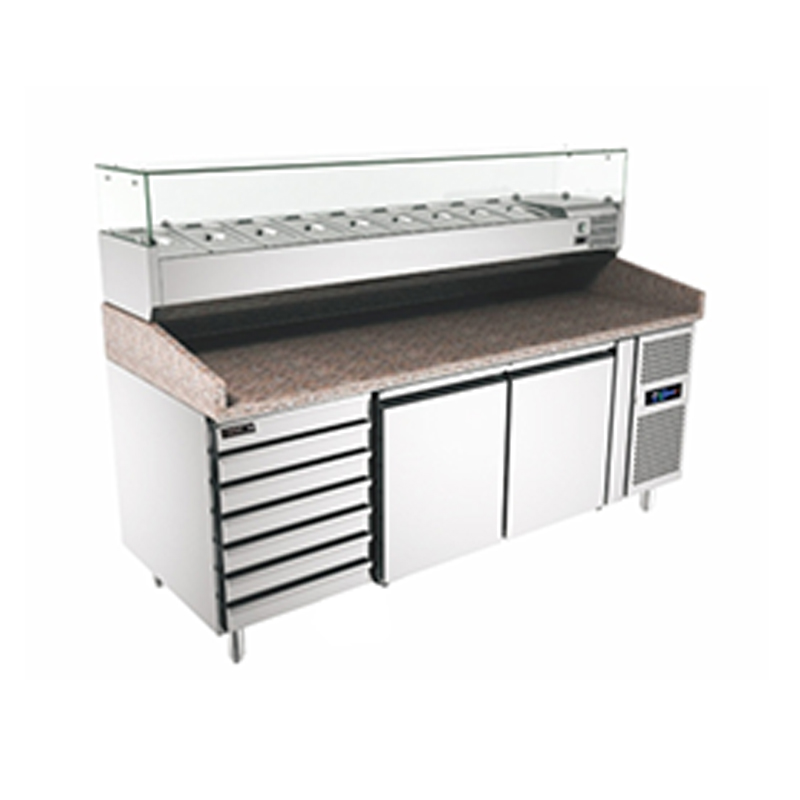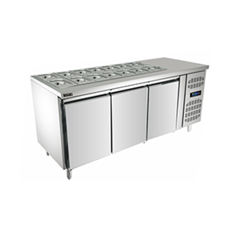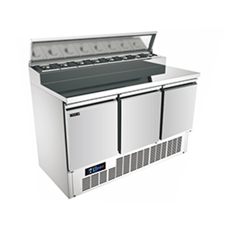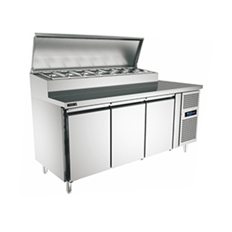 Trang chủ / Các sản phẩm / Tủ lạnh thương mại / Tủ lạnh chuẩn bị salad bằng thép không gỉ 304, tủ lạnh bàn chuẩn bị pizza